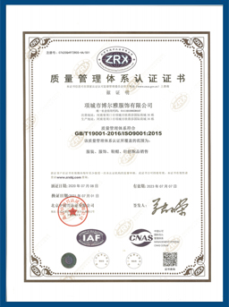 公司已通過ISO9001:2015質(zhì)量管理體系認證、ISO14001:2015環(huán)境管理體系認證、ISO45001:2018職業(yè)健康安全管理體系認證。產(chǎn)品已通過中國檢驗認證集團檢測。企業(yè)信用等級為AAA。